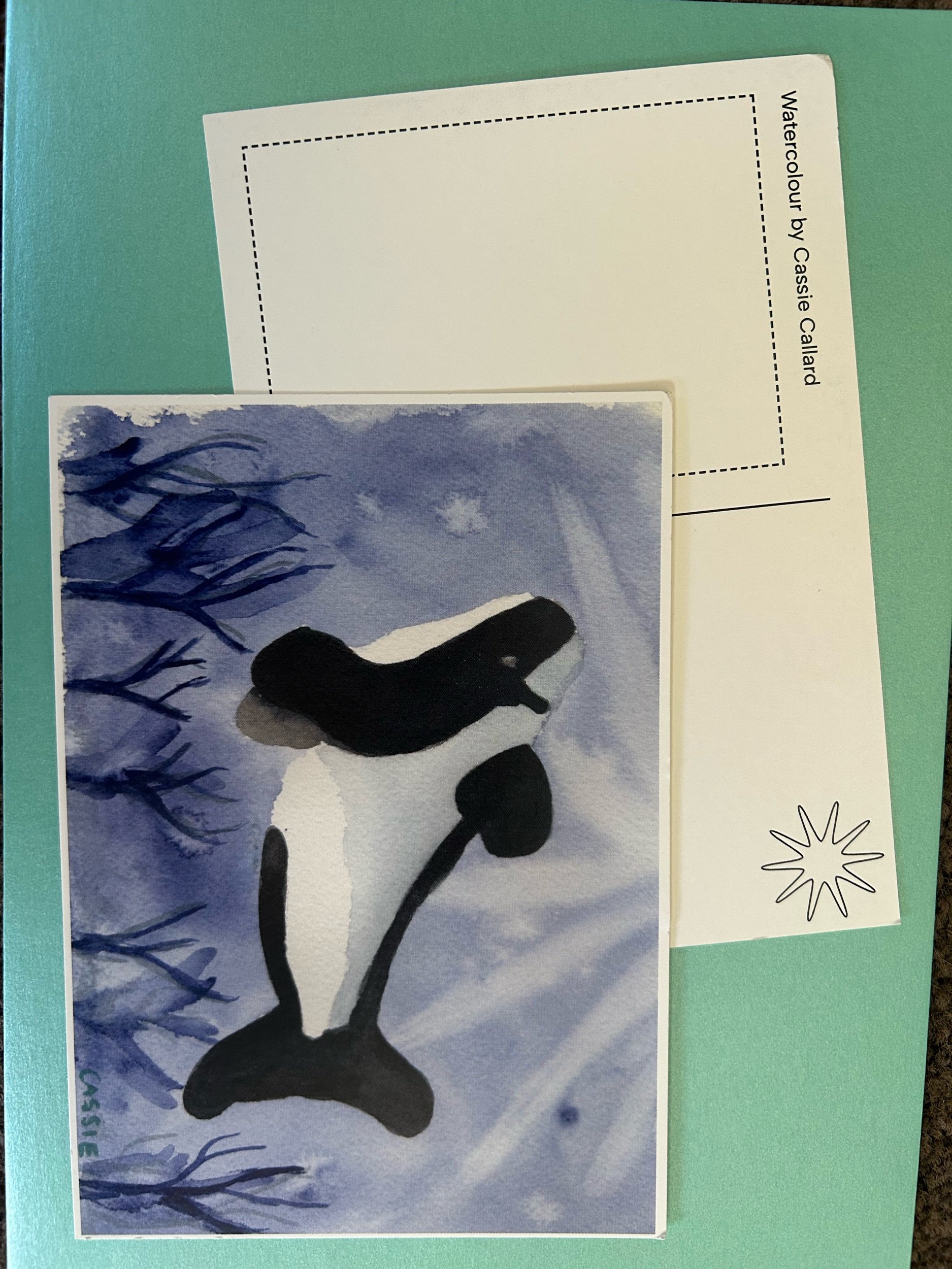 Cassie Callard | Artist | Shop Original and Print watercolours › 5 pack of Orca Postcards Image 1 of 1 5 pack of Orca Postcards $10.00 Back by popular request - I have five packs of the Orca postcard available again. Add To Cart Added! Back by popular request - I have five packs of the Orca postcard available again.